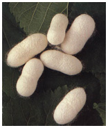 Silk is produced by various insects, but by far the largest quantity comes from the silkworm 'Bombyx Mori'. This is the silk worm, which feeds on mulberry leaves and forms a cocoon of Silk before pupating. The threads from several cocoons are subsequently unwound together to form a single strand of raw silk. This fine thread is the basic component of all Silk yarn and fabric. Some of the gum, which the silkworm uses to hold the cocoon together, remains to assist the delicate fibre during processing. It is subsequently washed away.