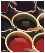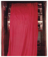 In the past twenty years, enormous strides have been made in improving not only the machines involved in the preparation of weaving, but in the loom itself. Non-stop weaving has been made possible by the introduction of automatic pirnchanging. And there are now shuttleless looms, (more properly called weaving machines). These machines use lances, or projectiles, or a jet of compressed air to shoot the weft-yarn between the warp-yarns, instead of the traditional shuttle, and at vastly higher speeds. This increased automation also meant that one weaving-worker can now look after 20 looms at the same time, instead of only 4 traditional looms. This has consequently led to much greater yield and productivity. Some of the modern weaving machines are large enough to weave fabrics 3 metres wide. In addition to their greater speeds these machines also offer the advantage for the weaver of enabling him to divide this large width into several smaller widths, for example 3 times 90 centimetres. Although modem weaving machinery has made enormous progress, certain specific types of silk can only be made on ordinary looms, as they are too complex to be woven on highly-automated machines, running at very high speeds. This is notably the case for high-novelty fabrics, and even more so for the reproduction of traditional fabrics used for wallcoverings, upholstery etc. Many of these fabrics are produced on Jacquard looms, called after their Lyonnais inventor, who in 1801 perfected the existing system of patternweaving, by the use of perforated cards. The Jacquard loom makes it possible to weave intricate and multi-coloured patterns directly into the fabric, and thus create highly elaborate and handsome fabrics. As soon as they come off the loom, the fabrics are thoroughly inspected so as to eliminate any defects that may have occurred during weaving. |